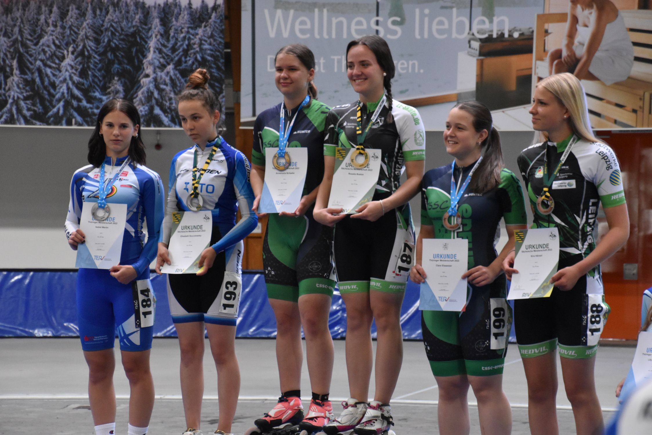 Am Samstag fanden traditionsgemäß in Erfurt in der Gunda-Niemann-Stirnemann- Eisschnelllaufhalle die Landesmeisterschaften für Sachsen und Thüringen statt. In 3 Strecken (Parcours oder Mittelstrecke, Sprint und Langstrecke) wurden unter den sächsischen Vereinen SC DHfK Leipzig, Speedskating Leipzig, Großenhainer Rollsportverein und dem Speedskate-Club Meißen die Besten ermittelt. Für viele unserer 24 angereisten Sportler im Alter von 6 bis 55 Jahren ein Jahreshöhepunkt.